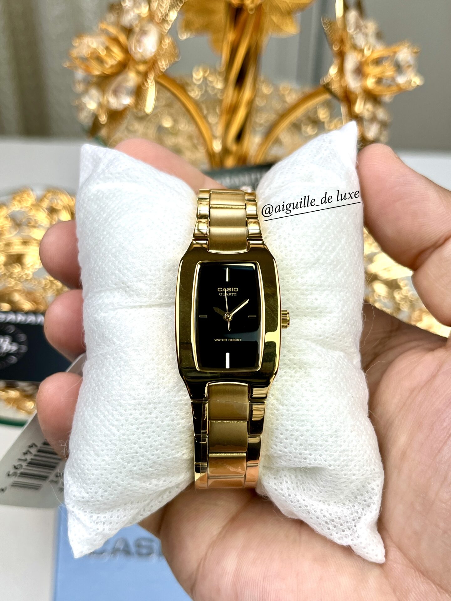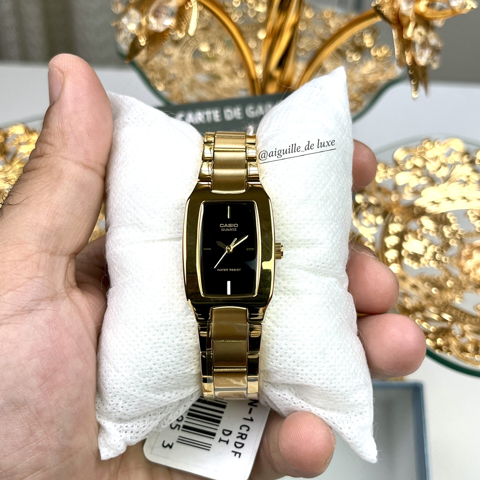 La Casio LTP-1165N-1C est une montre analogique pour femme au design raffiné, dotée d’un boîtier et d’un bracelet en acier inoxydable plaqué or, d’un cadran noir épuré, et d’une résistance à l’eau adaptée à une utilisation quotidienne.