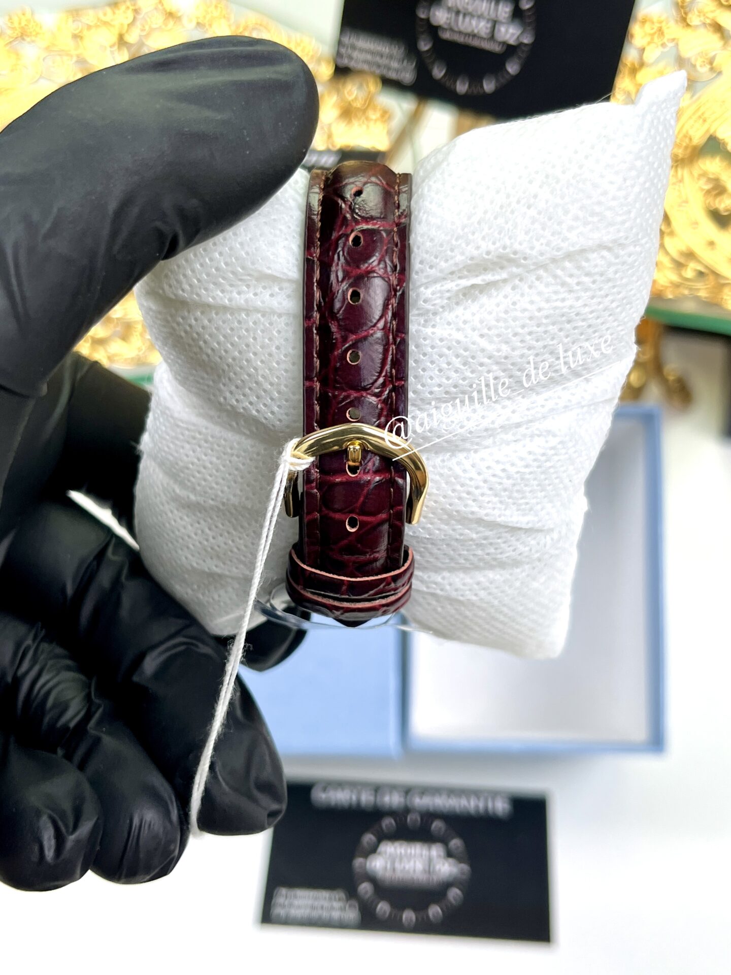 Le bracelet en cuir véritable, associé à une boucle ardillon classique, apporte une touche de luxe et facilite l’ajustement. Robuste tout en restant délicat, il met en valeur le design raffiné de la montre.