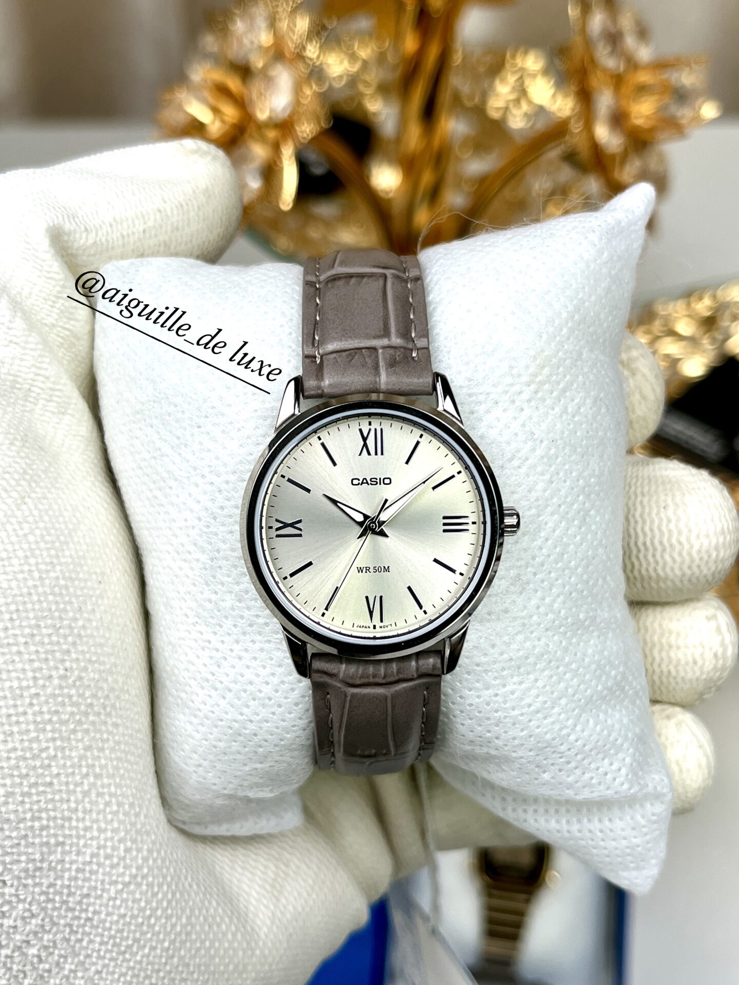 La Casio LTP-1303LL-7A séduit par son design classique, son cadran clair raffiné et son bracelet en cuir souple. Une montre féminine élégante et confortable, idéale pour un usage quotidien comme pour les occasions habillées.