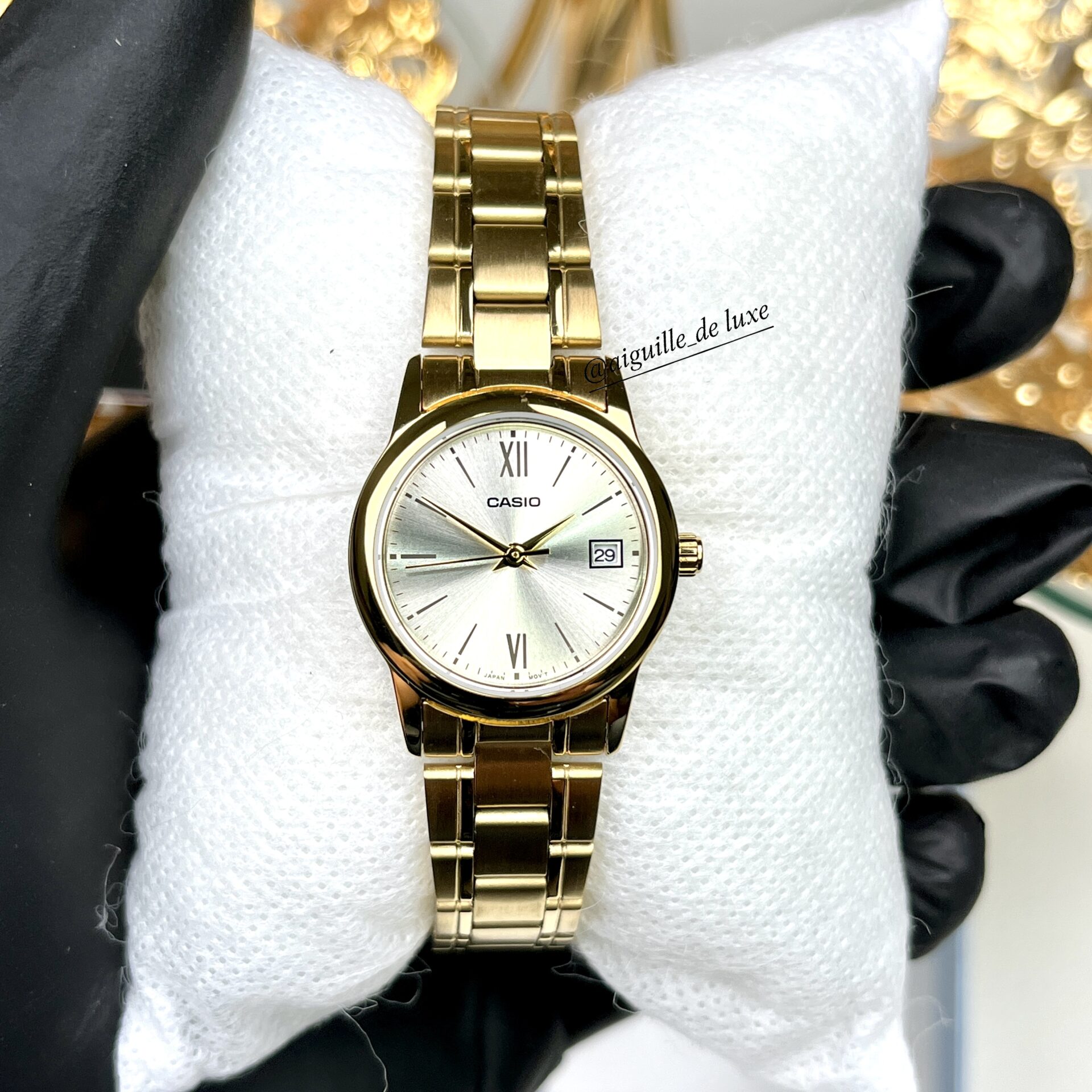 Ajoutez une touche de sophistication à votre poignet avec la Casio LTP-V002G-9B3. Dotée d’un boîtier et d’un bracelet en acier inoxydable doré, d’un cadran doré avec affichage de la date, cette montre allie élégance et fonctionnalité pour un usage quotidien.