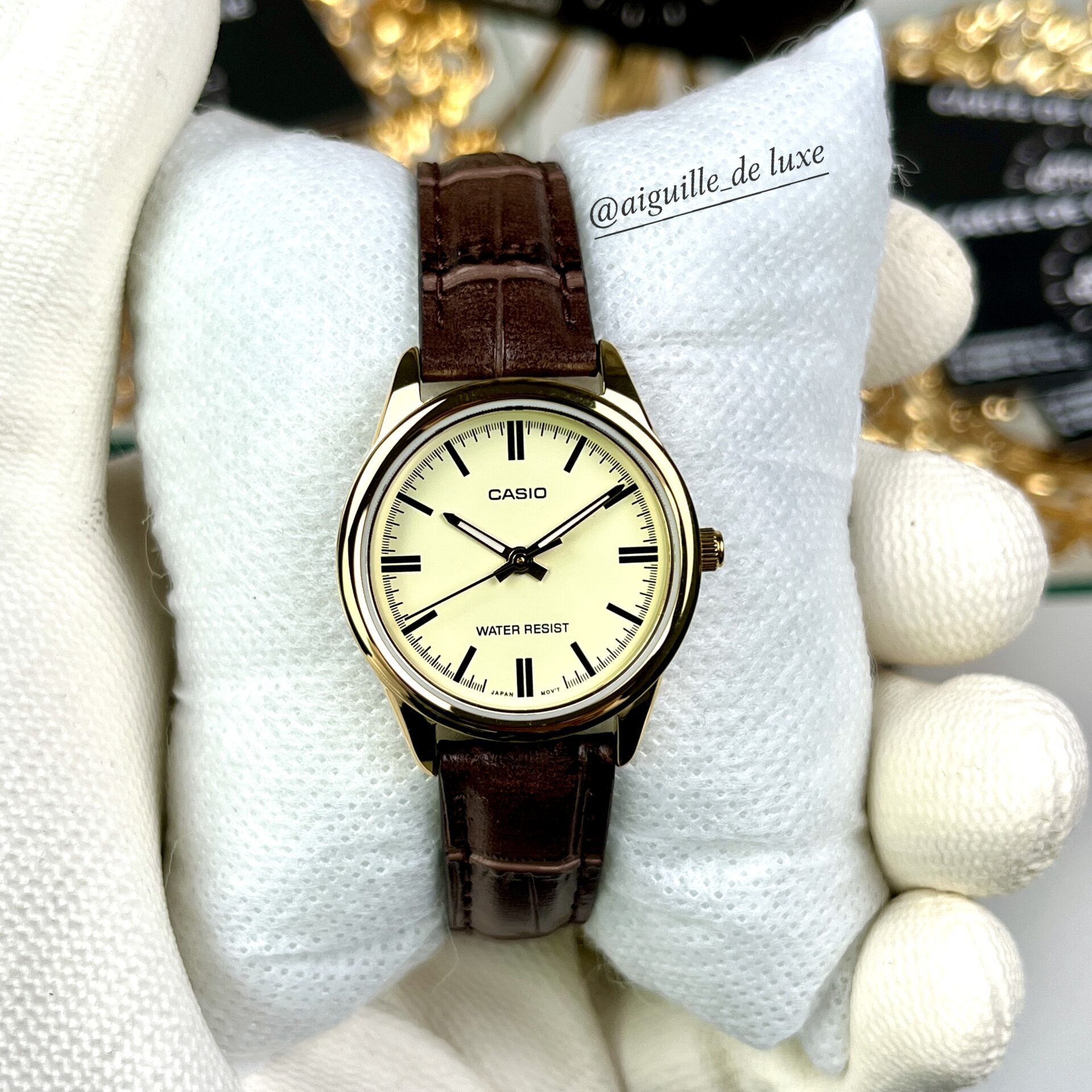 Casio Femme LTP-V005GL-9A Cadran Doré Bracelet Cuir Intemporel
