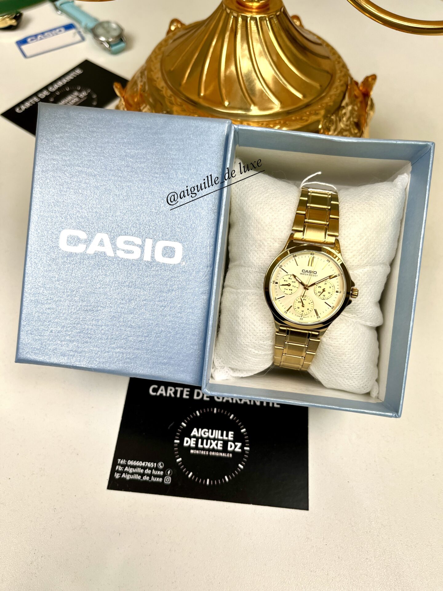 - Matériau du boîtier : Acier inoxydable doré