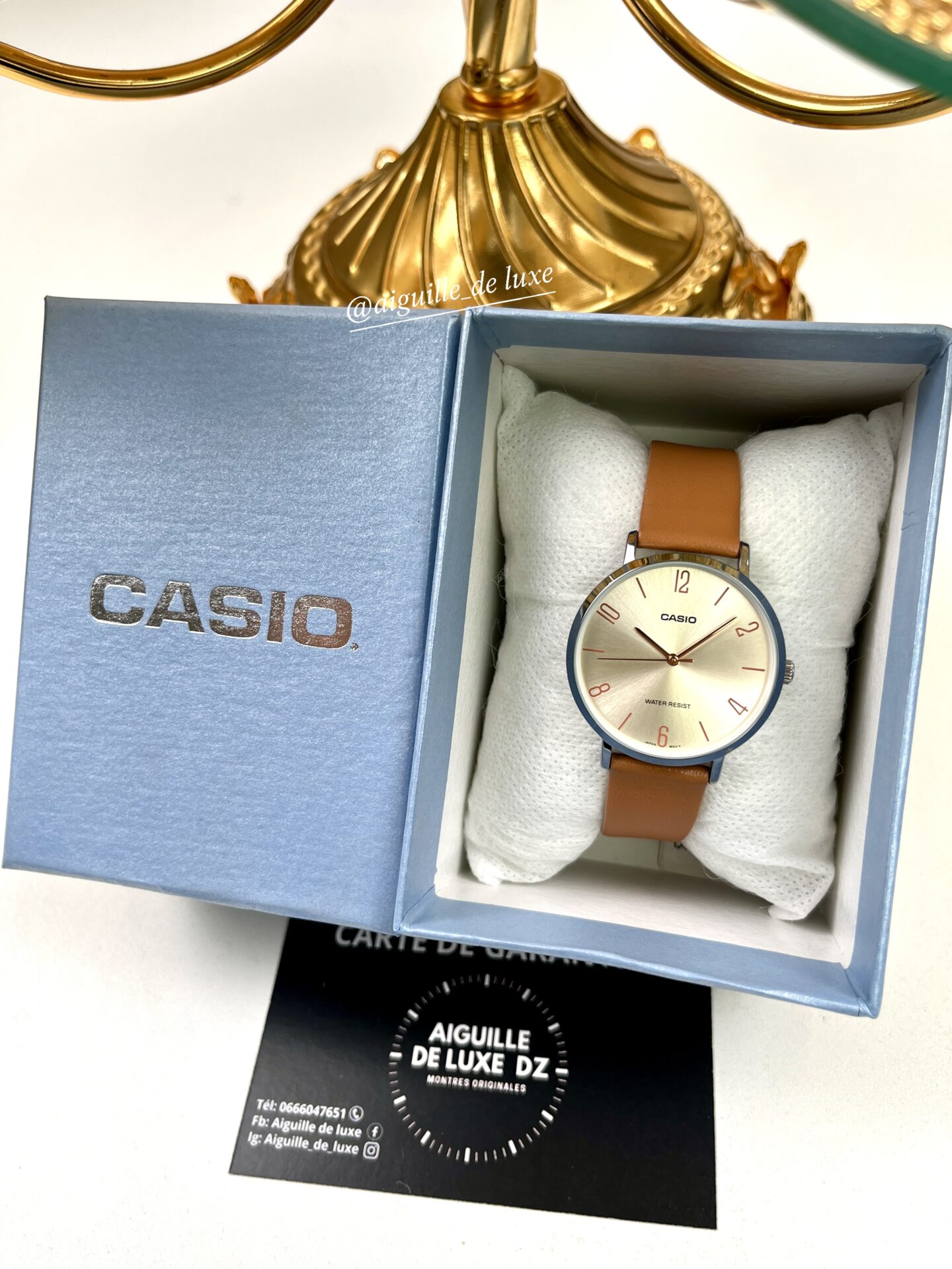 La Casio LTP-VT01L-5B combine raffinement discret et confort journalier. Avec son boîtier fin en acier inoxydable, son bracelet en cuir marron véritable et un cadran beige clair, elle s’impose comme une montre élégante et polyvalente pour les femmes recherchant simplicité et style.