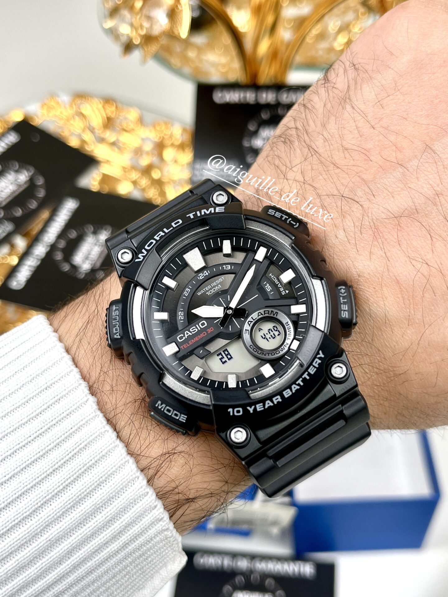 La Casio AEW-110-1A se distingue par son design sportif et fonctionnel, pensé pour accompagner un rythme de vie dynamique. Son boîtier en résine robuste assure une excellente résistance aux chocs tout en restant léger au poignet, tandis que son bracelet en résine souple garantit un confort durable, même lors d’un port prolongé.