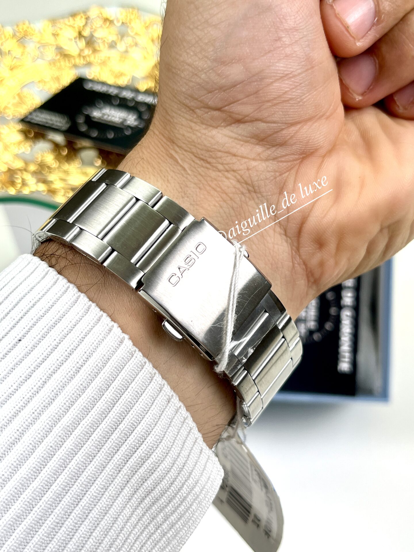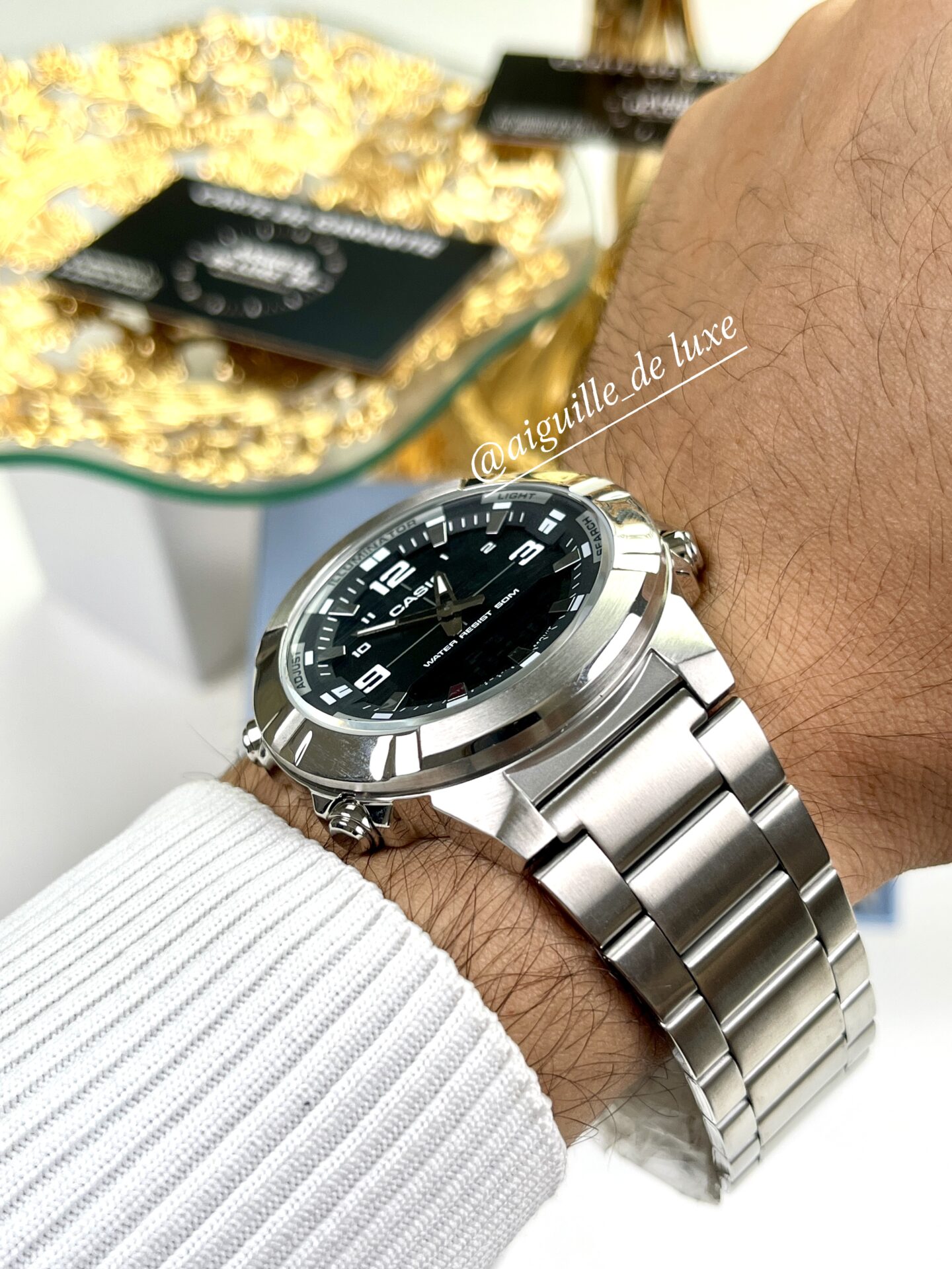 La Casio AMW-870D-1A est une montre polyvalente qui combine un affichage analogique traditionnel avec des fonctionnalités numériques modernes. Son boîtier et son bracelet en acier inoxydable assurent durabilité et style, tandis que sa résistance à l’eau jusqu’à 50 mètres la rend adaptée à une utilisation quotidienne, y compris la natation en piscine. Parmi ses fonctionnalités, on retrouve un éclairage LED pour une lisibilité optimale, un chronomètre précis, un compte à rebours, des alarmes multiples et une mémoire Telememo pouvant stocker jusqu’à 30 ensembles de données, incluant noms et numéros de téléphone. Avec une autonomie de batterie pouvant atteindre 10 ans, cette montre est conçue pour accompagner l’homme moderne dans toutes ses activités.