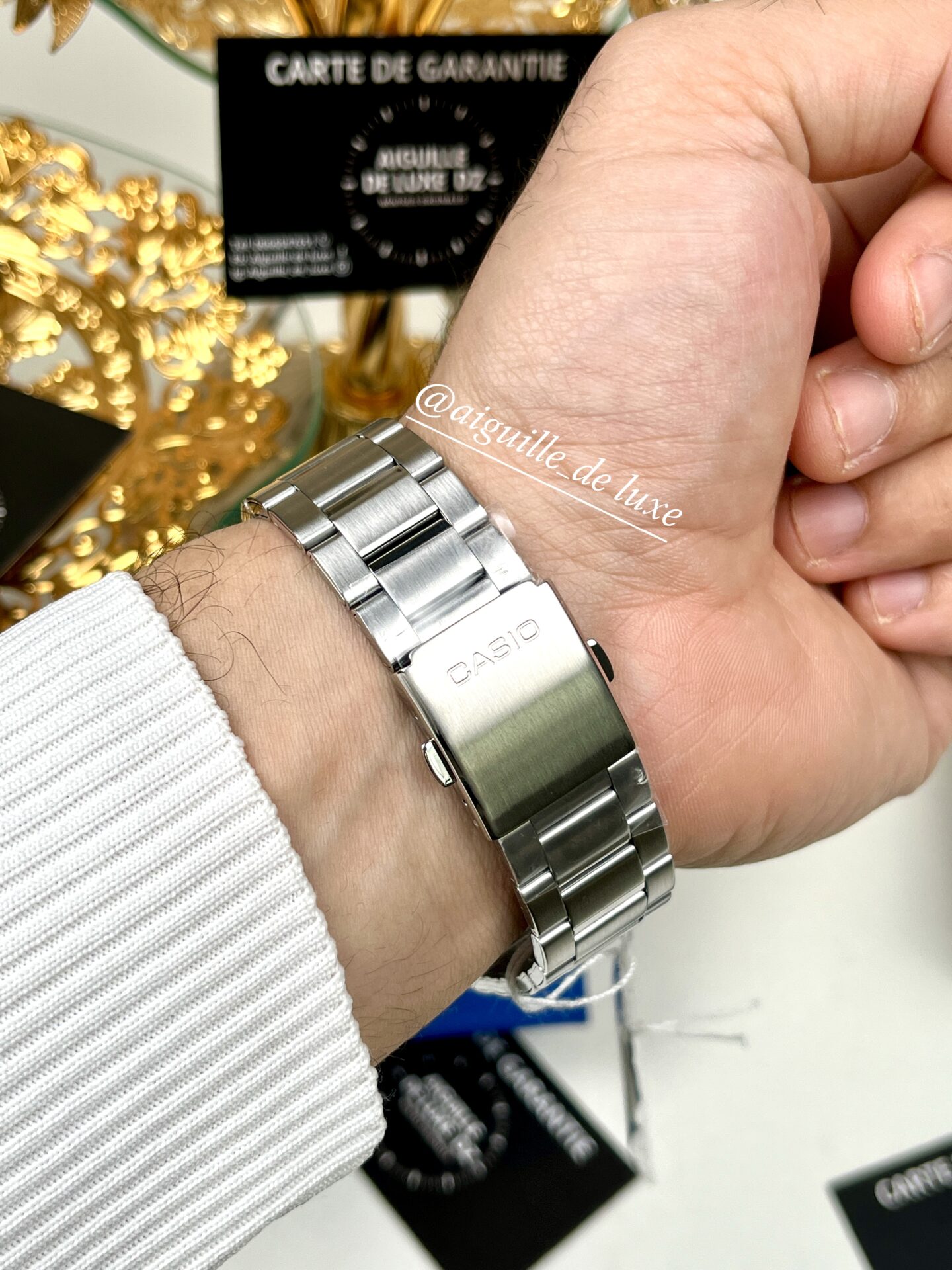 La Casio AMW-880D-1A est une montre pour homme qui allie élégance et fonctionnalité. Son cadran noir est protégé par un verre minéral, et le boîtier ainsi que le bracelet en acier inoxydable assurent une durabilité et un style intemporel.