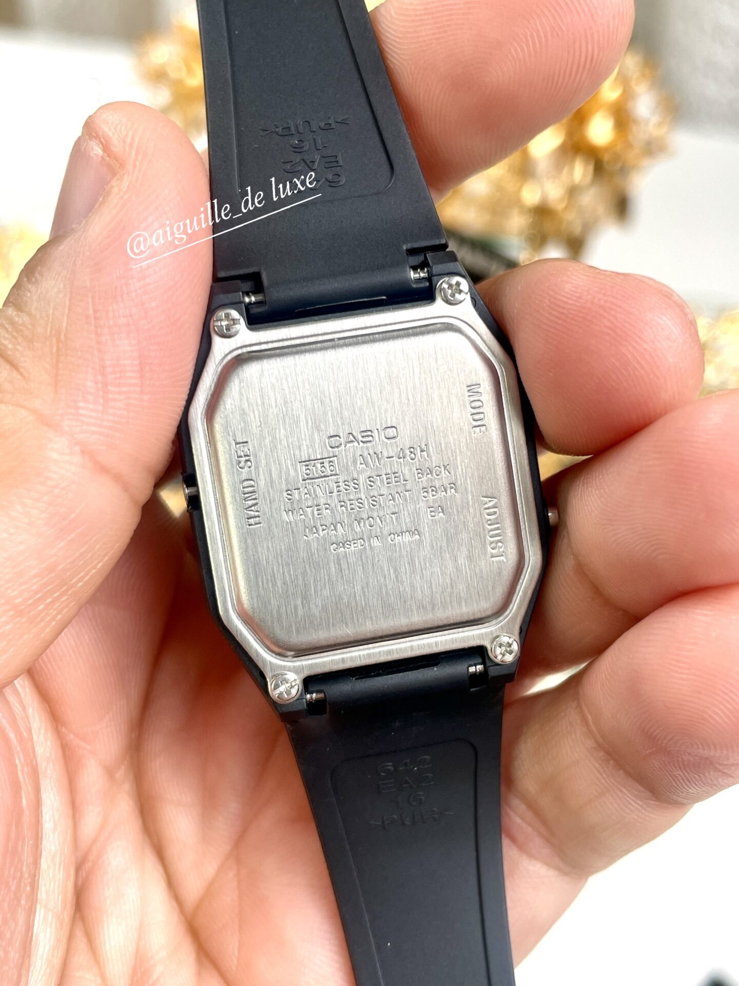 • Résistance à l’eau (en mètres) : 50 mLa Casio AW-48HE-7A propose une combinaison réussie entre l’affichage analogique traditionnel et une petite fenêtre digitale pratique. Son cadran clair, avec aiguilles contrastées et repères visibles, offre une lecture nette, tandis que l’écran digital intègre des fonctions utiles pour la vie quotidienne.