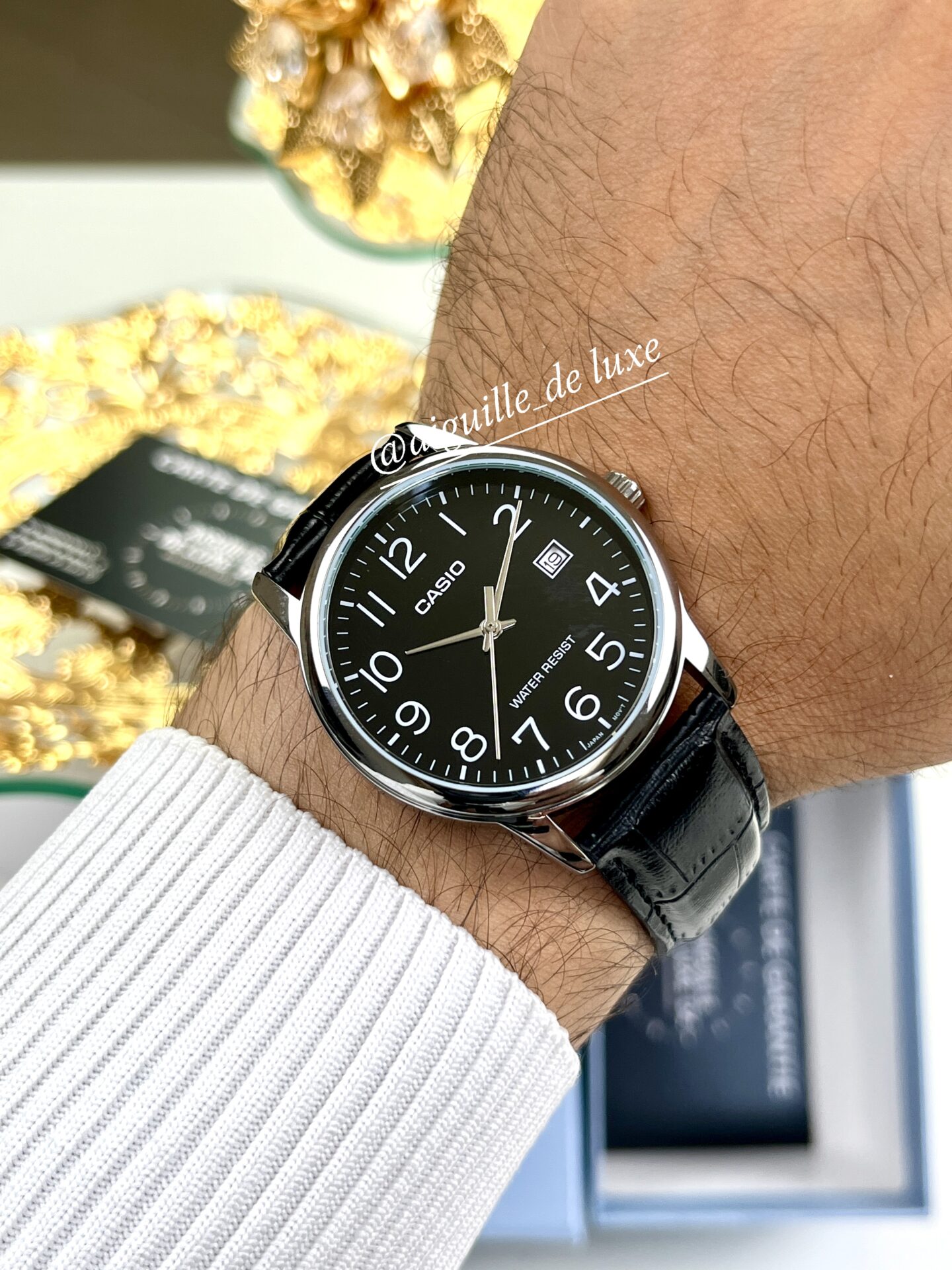 La Casio MTP-V002L-1B est conçue pour les hommes appréciant un design classique et fonctionnel. Équipée d’un mouvement à quartz précis, elle affiche les heures, minutes, secondes et la date avec une clarté optimale. Le cadran noir épuré est protégé par un verre minéral résistant aux rayures, assurant une durabilité accrue. Le bracelet en cuir noir de haute qualité offre un confort exceptionnel au poignet, tandis que le boîtier en acier inoxydable garantit une robustesse à toute épreuve. Avec une résistance à l’eau jusqu’à 30 mètres, cette montre est idéale pour une utilisation quotidienne, résistant aux éclaboussures et à la pluie. Optez pour la Casio MTP-V002L-1B et ajoutez une touche d’élégance intemporelle à votre collection.