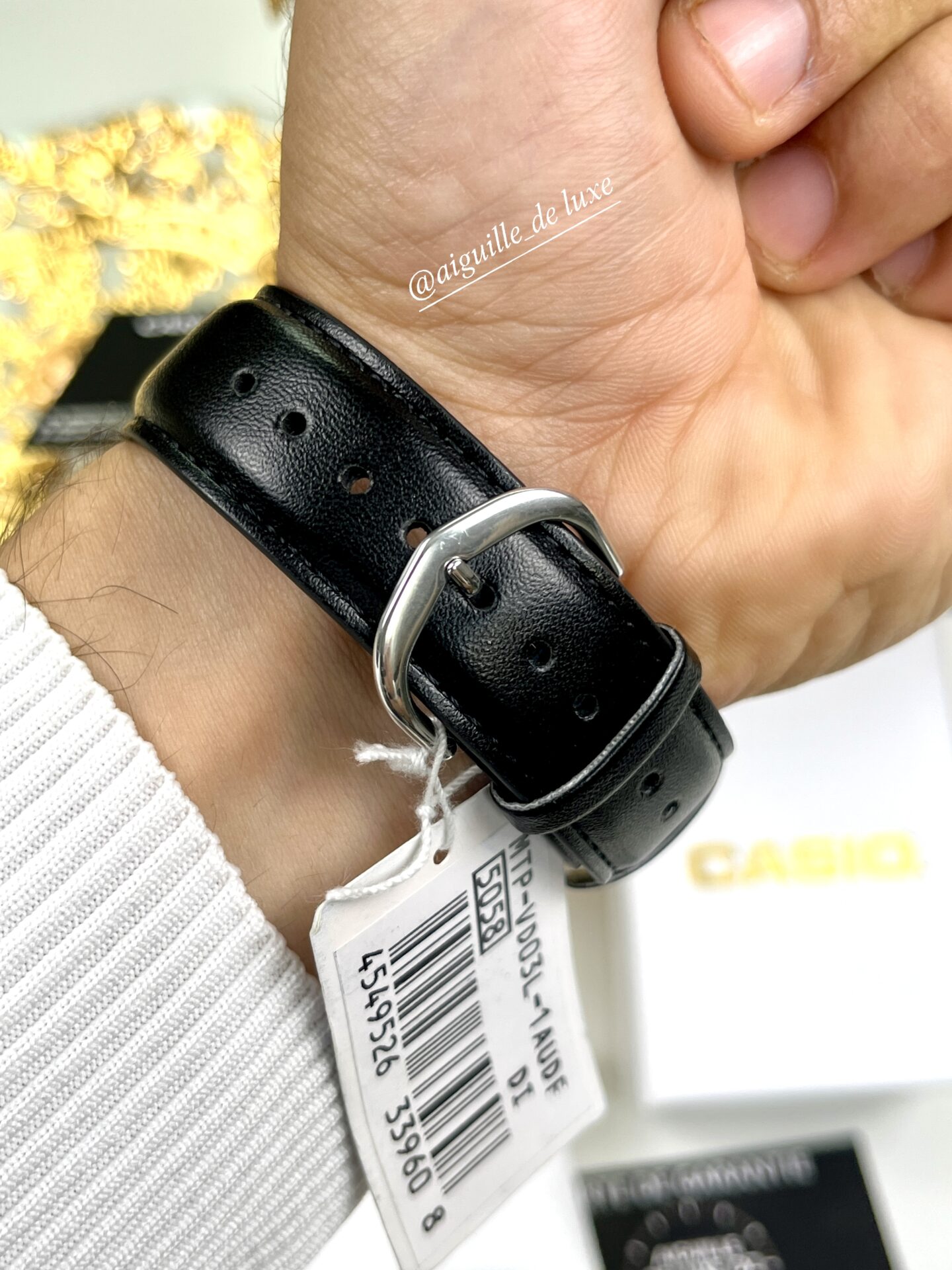 La Casio MTP-VD03L-1A est conçue pour les hommes appréciant un design sobre et fonctionnel. Équipée d’un mouvement à quartz précis, elle affiche les heures, minutes et secondes avec une clarté optimale. Le cadran noir épuré est protégé par un verre minéral résistant aux rayures, assurant une durabilité accrue. Le bracelet en cuir noir de haute qualité offre un confort exceptionnel au poignet, tandis que le boîtier en acier inoxydable garantit une robustesse à toute épreuve. Avec une résistance à l’eau jusqu’à 30 mètres, cette montre est idéale pour une utilisation quotidienne, résistant aux éclaboussures et à la pluie. Optez pour la Casio MTP-VD03L-1A et ajoutez une touche d’élégance intemporelle à votre collection.