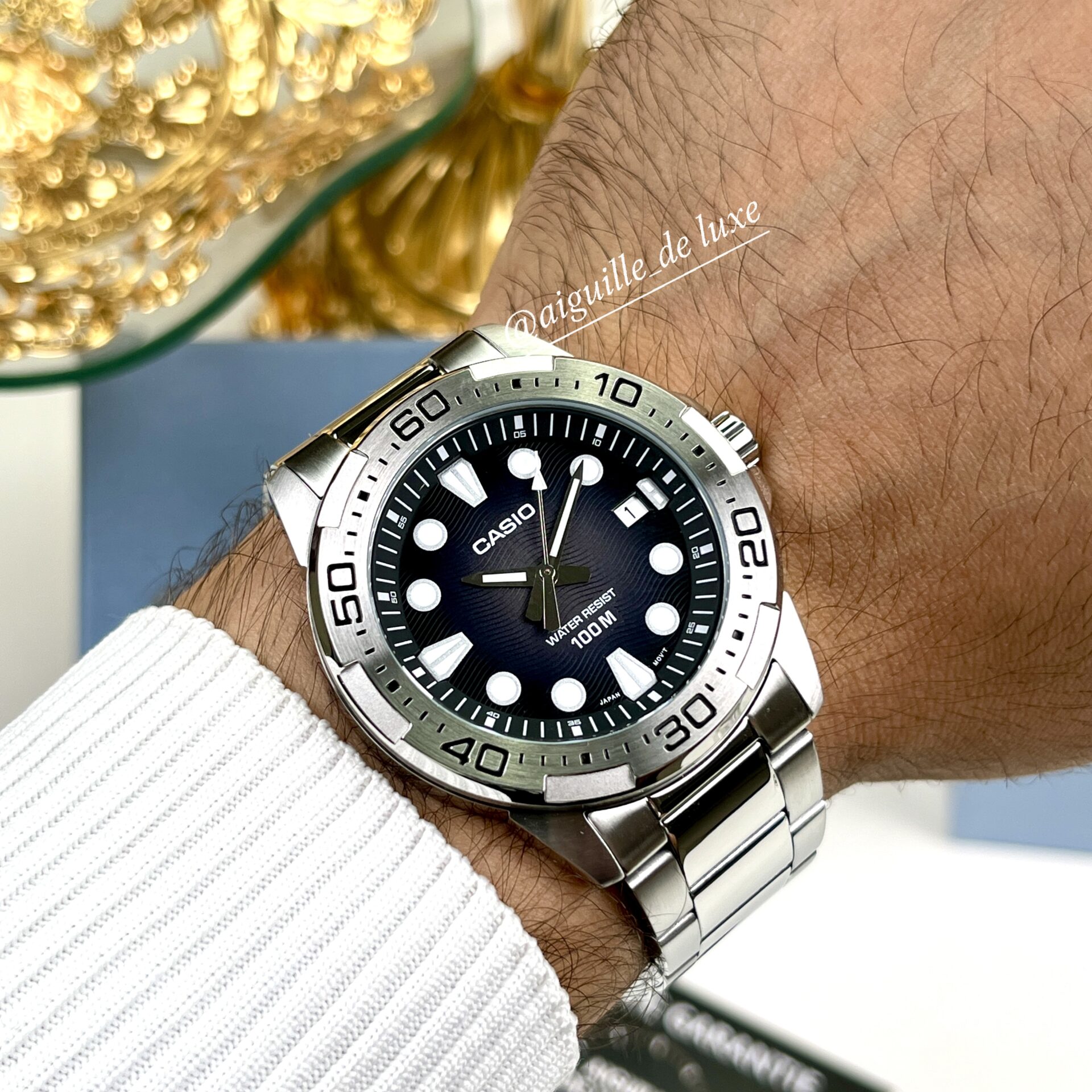 La Casio MTD-140D-1A allie élégance et solidité grâce à son design intemporel en acier inoxydable et son cadran noir profond. Conçue pour les hommes actifs, elle offre un style polyvalent, une excellente lisibilité et une résistance remarquable à l’eau.