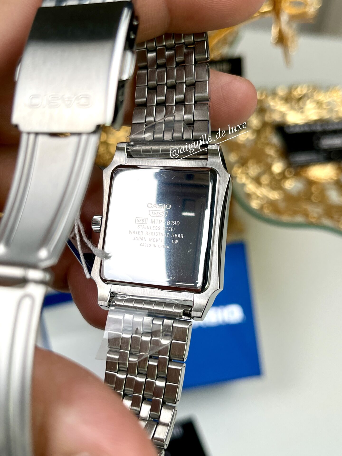 La Casio MTP‑B190D‑1B incarne l’équilibre parfait entre esthétique classique et fonctionnalité quotidienne. Son design rectangulaire raffiné et son cadran noir contrasté avec index facilitent la lecture des heures, des minutes et des secondes avec précision. Le mouvement quartz fiable assure une mesure du temps stable et durable.