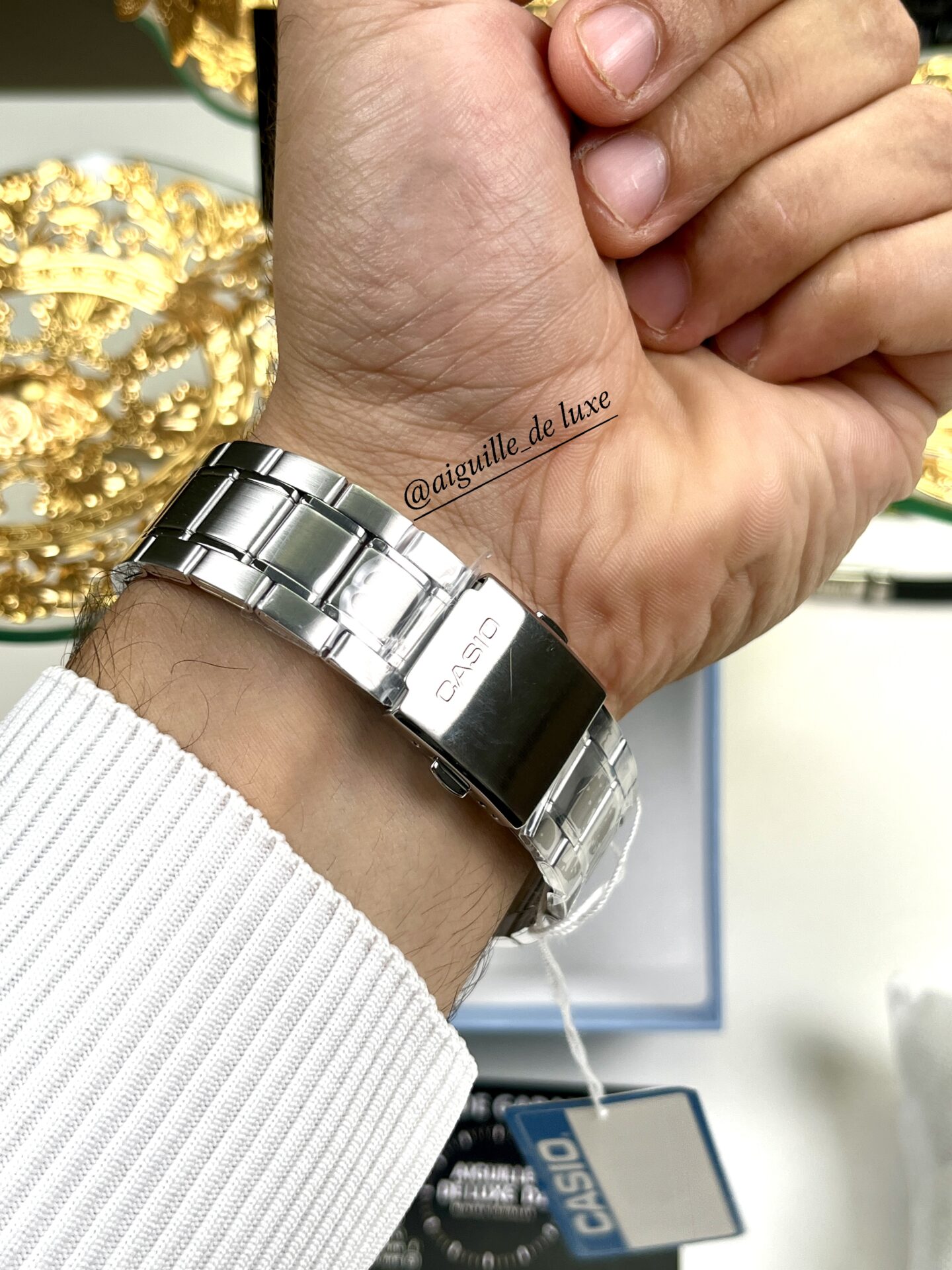 La Casio MTP-1375D-7A se distingue par son allure élégante et son esprit moderne. Son cadran blanc argenté, rehaussé d’index métalliques et de trois sous-cadrans fonctionnels, lui confère une apparence sophistiquée tout en offrant une lisibilité optimale. Le design harmonieux et les finitions soignées en font une montre aussi élégante qu’efficace.