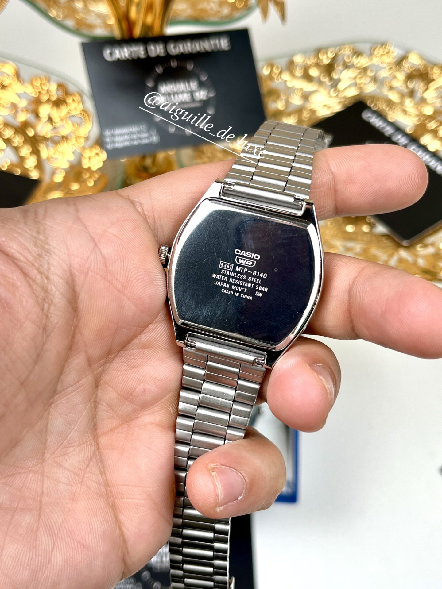 • Éclairage : NonLa Casio MTP-B140D-1A se distingue par un style élégant et contemporain, parfaitement adapté à un usage quotidien ou professionnel. Son cadran noir offre un contraste net avec les index et aiguilles, assurant une lecture facile et claire de l’heure. Le boîtier en acier inoxydable confère solidité et durabilité, tout en conservant une silhouette soignée et sophistiquée.