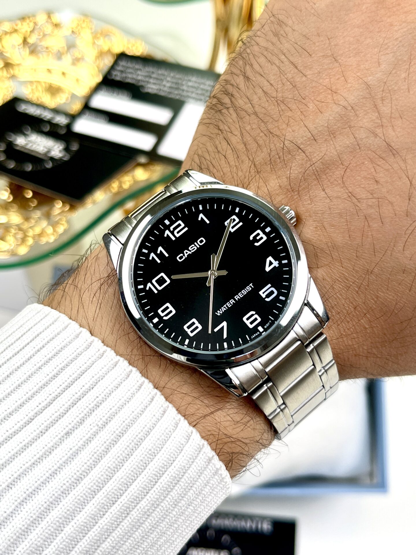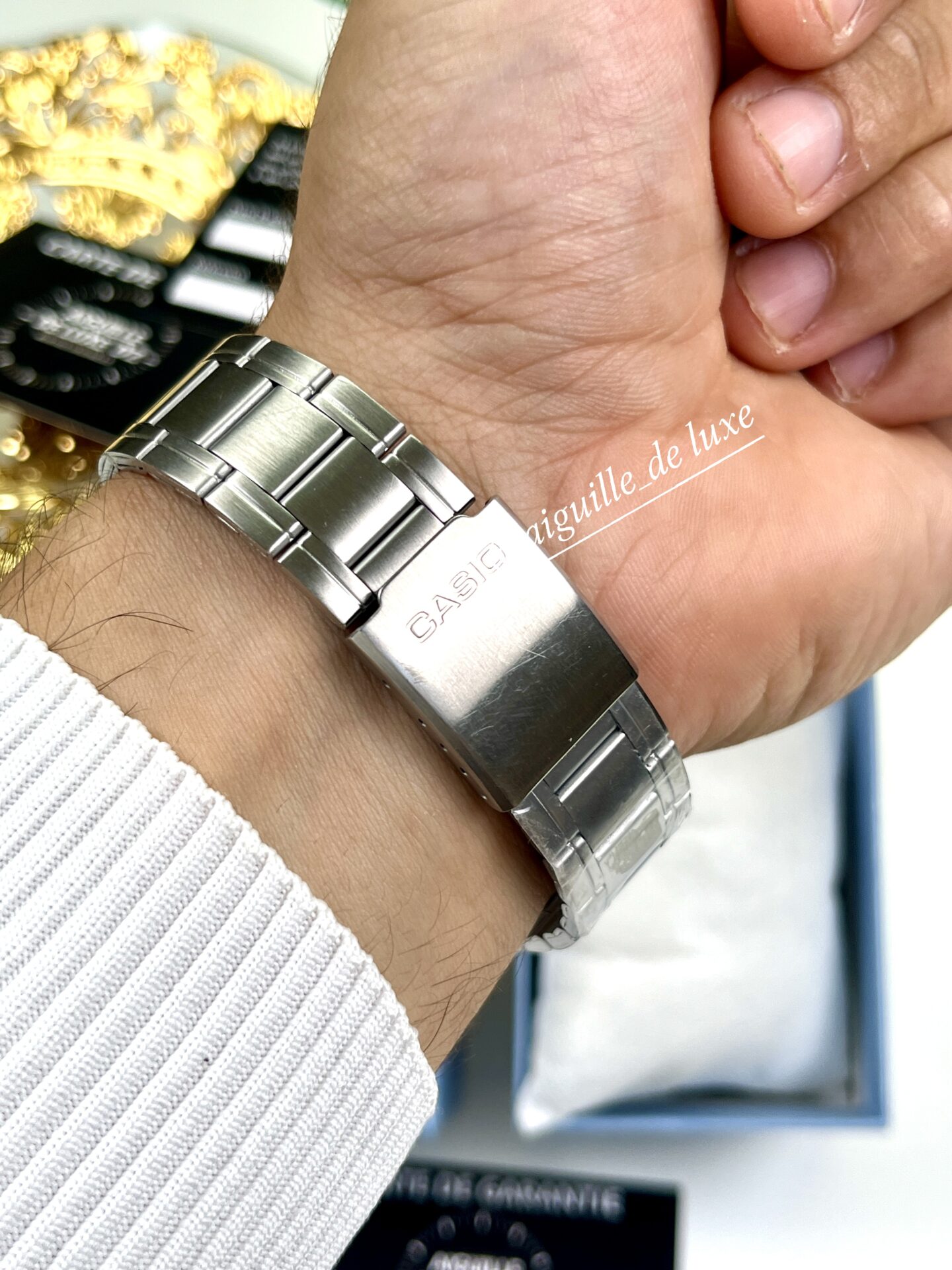 La Casio MTP-V001D-1B se distingue par son allure classique et son confort, en faisant un choix idéal pour l’homme qui recherche une montre élégante, sobre et durable.
