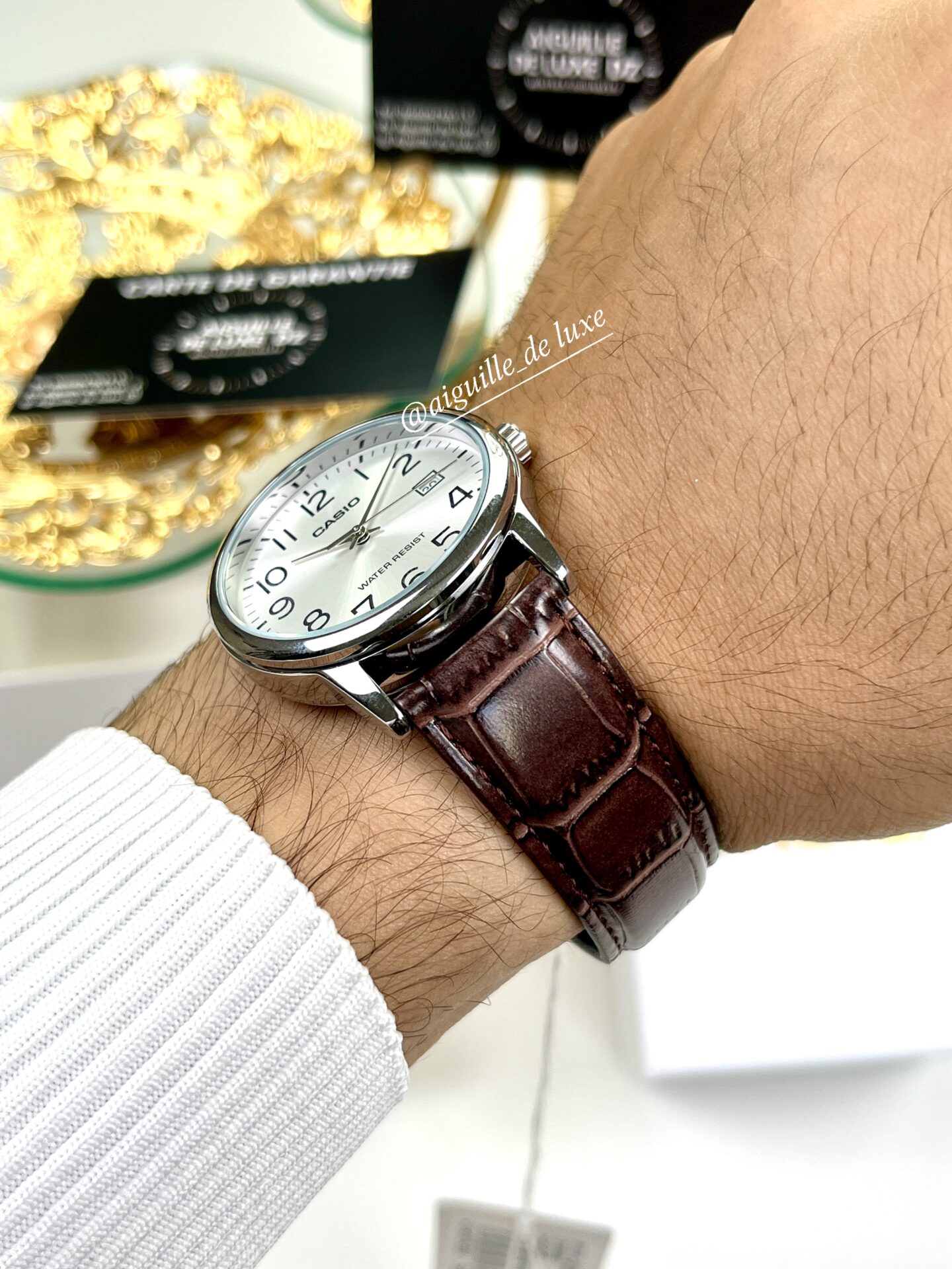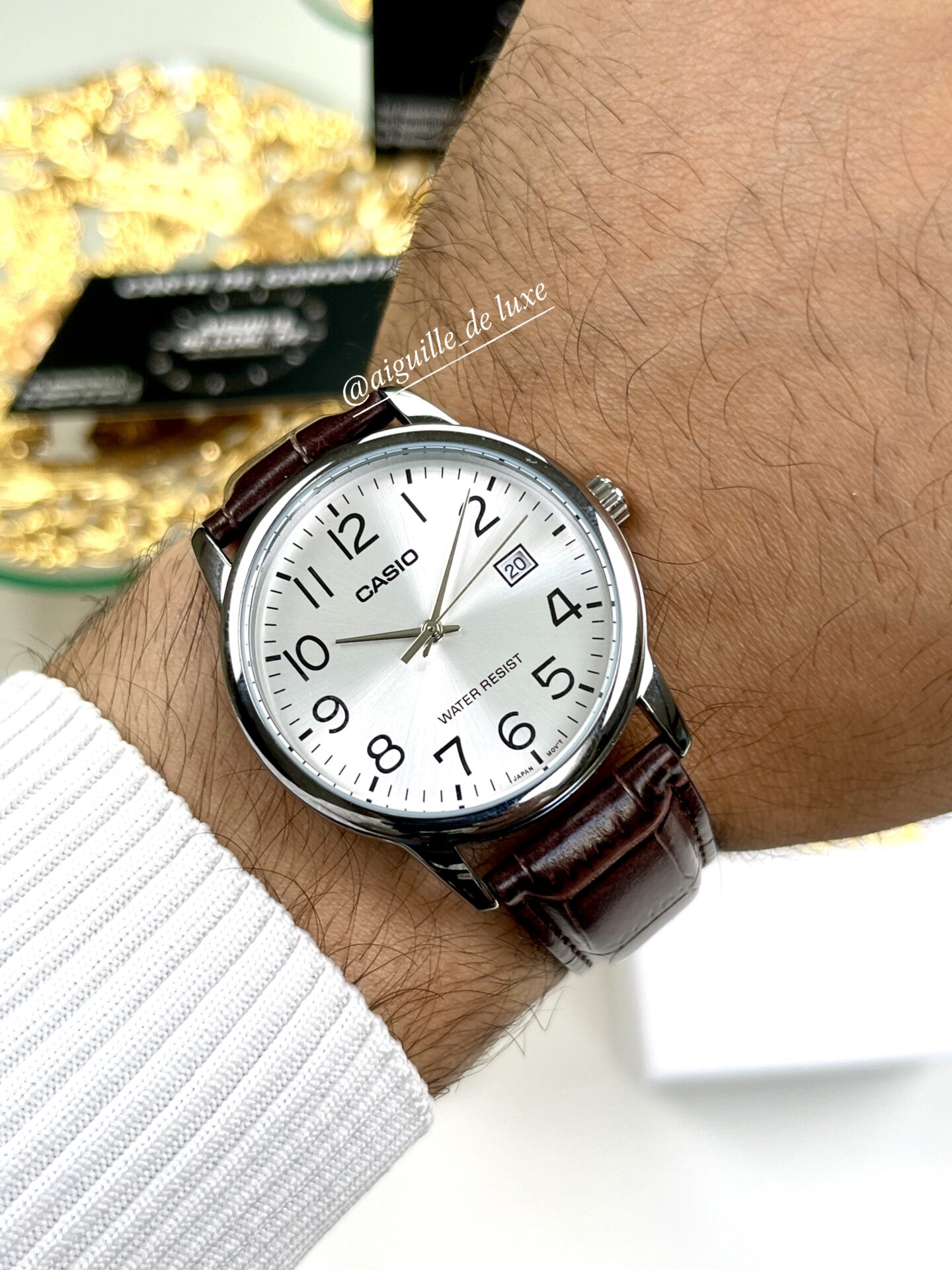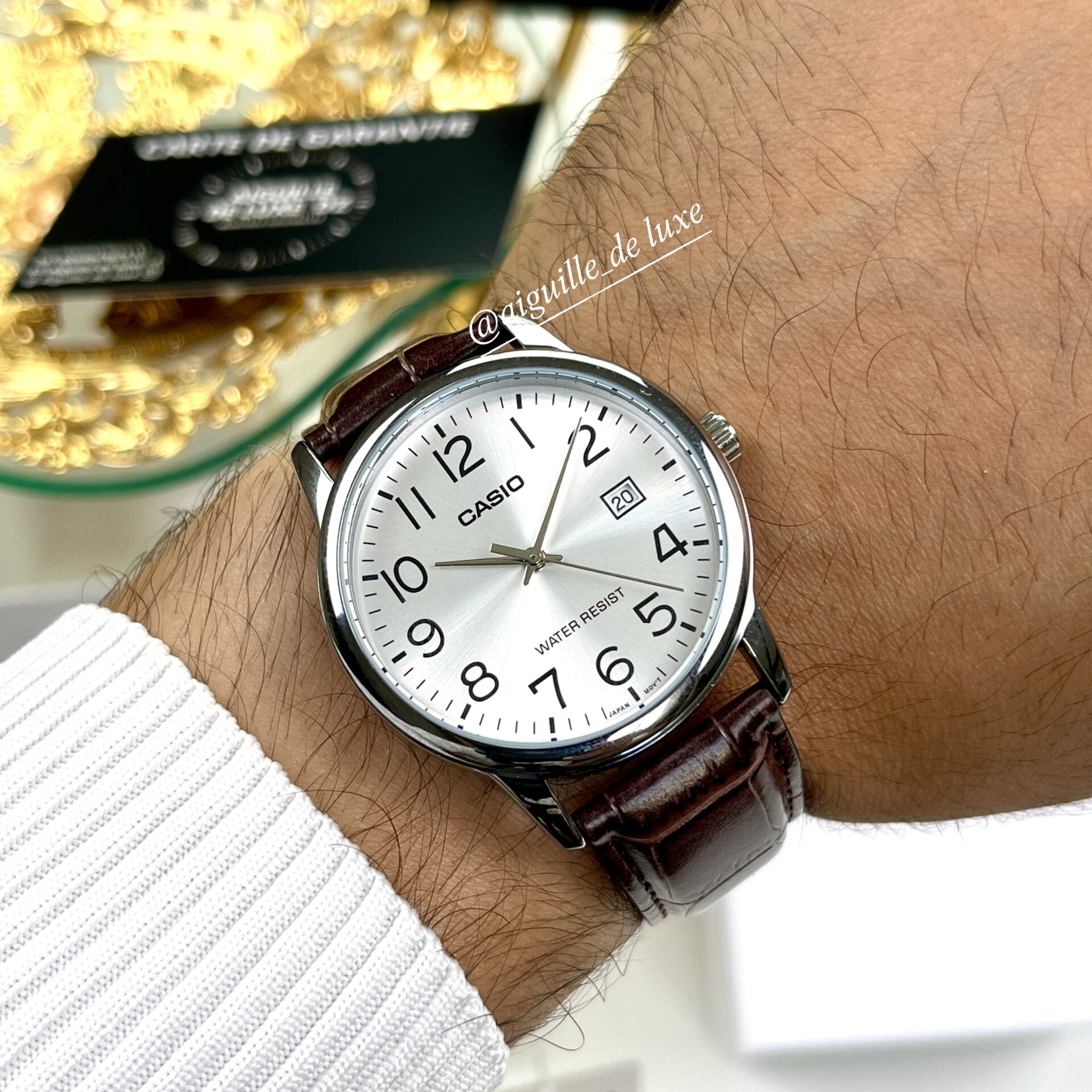 Montre analogique au look sobre et raffiné, la Casio Homme MTP-V002L-7B2 mise sur un bracelet en cuir marron élégant, un affichage clair avec index romains, et un guichet date pratique à 3 h. L’essence du style classique, fiable jour après jour.