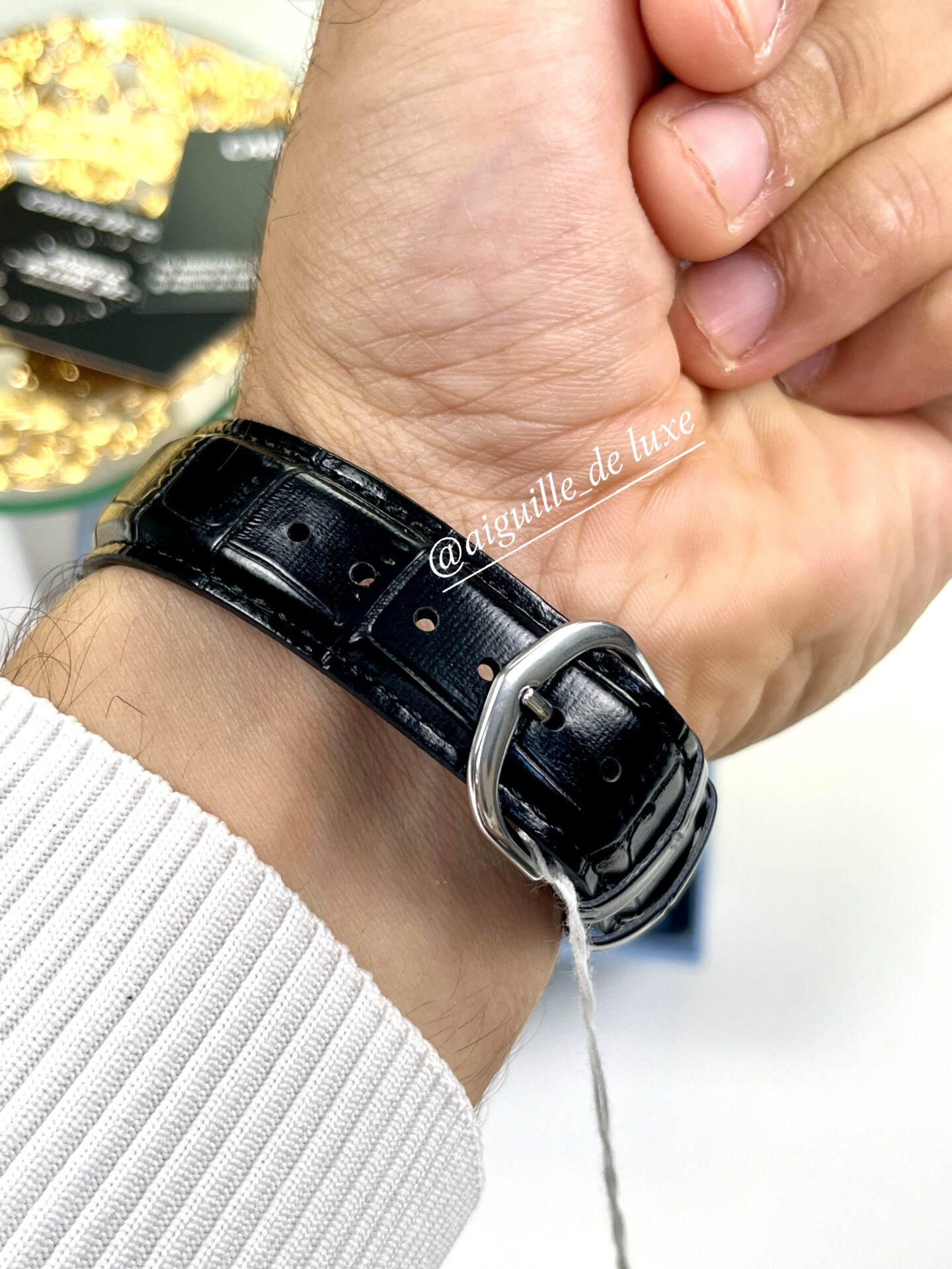 L’étanchéité à 30 mètres protège contre les éclaboussures quotidiennes et l’humidité légère, bien qu’il ne soit pas recommandé de l’immerger. La simplicité du design, sans surcharge fonctionnelle, renforce l’élégance intemporelle de cette pièce.