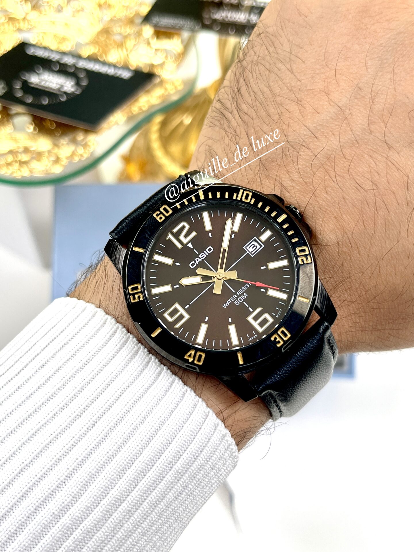 La Casio MTP-VD01BL-5B se distingue par un design sportif aux accents élégants. Son cadran rond bleu vif, rehaussé d’index contrastés, offre une lisibilité claire et un rendu visuel remarquable. Le boîtier en acier inoxydable assure robustesse et durabilité, tandis que le traitement ionique noir (sur certaines déclinaisons) apporte une touche moderne. Le bracelet en cuir bleu complète l’ensemble avec élégance, garantissant confort et style soigné.