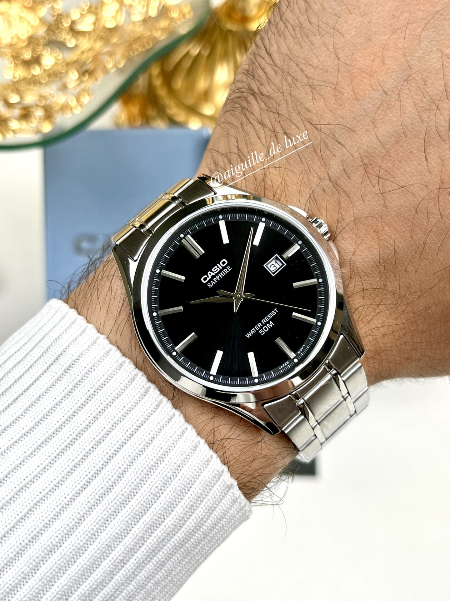 Avec une résistance à l’eau de 50 mètres, la MTS-115D-1A convient parfaitement à un usage quotidien, que ce soit dans un cadre professionnel ou décontracté. Élégante, résistante et intemporelle, elle s’impose comme le choix idéal pour l’homme souhaitant une montre sophistiquée dotée d’un verre saphir haut de gamme.