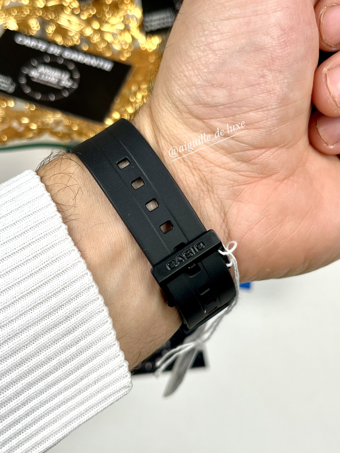 Le boîtier et le bracelet en résine assurent une construction légère et durable, parfaite pour un port prolongé sans gêne. Avec environ 23 g, ce modèle se fait presque oublier au poignet tout en restant robuste face aux chocs légers et à l’usure quotidienne.